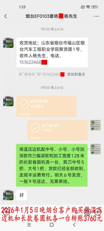 1月5日晚煙臺客戶轉(zhuǎn)賬3760元