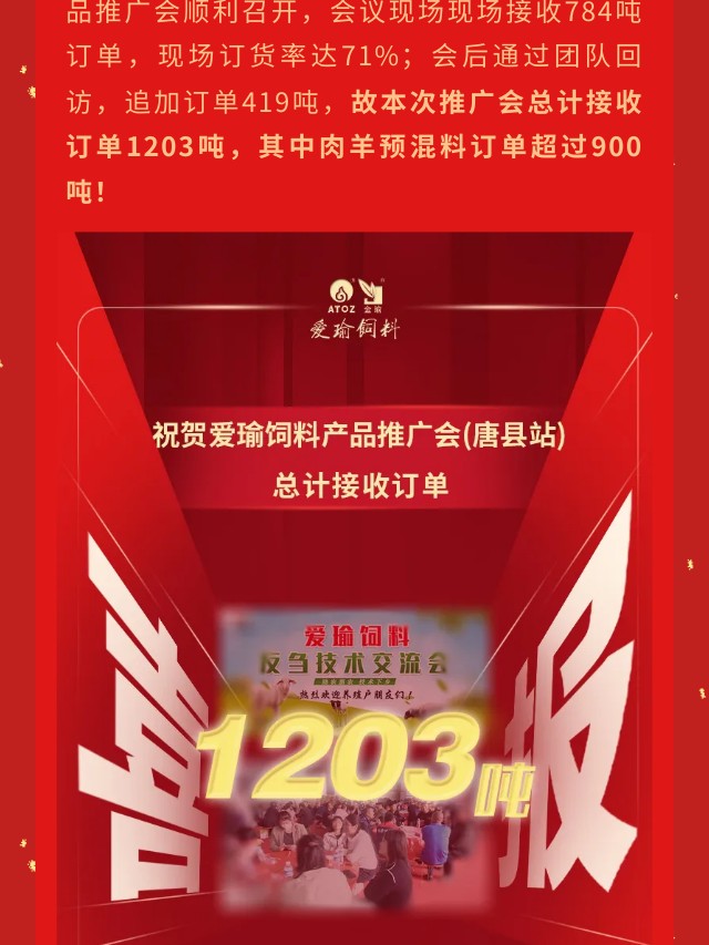 喜報 | 愛瑜飼料產(chǎn)品推廣會(唐縣站)總計接收訂單1203噸!