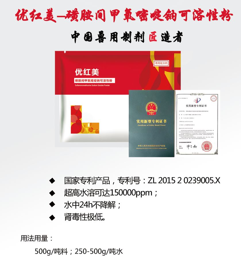 名稱:優(yōu)紅美-磺胺間甲氧嘧啶鈉可溶性粉
